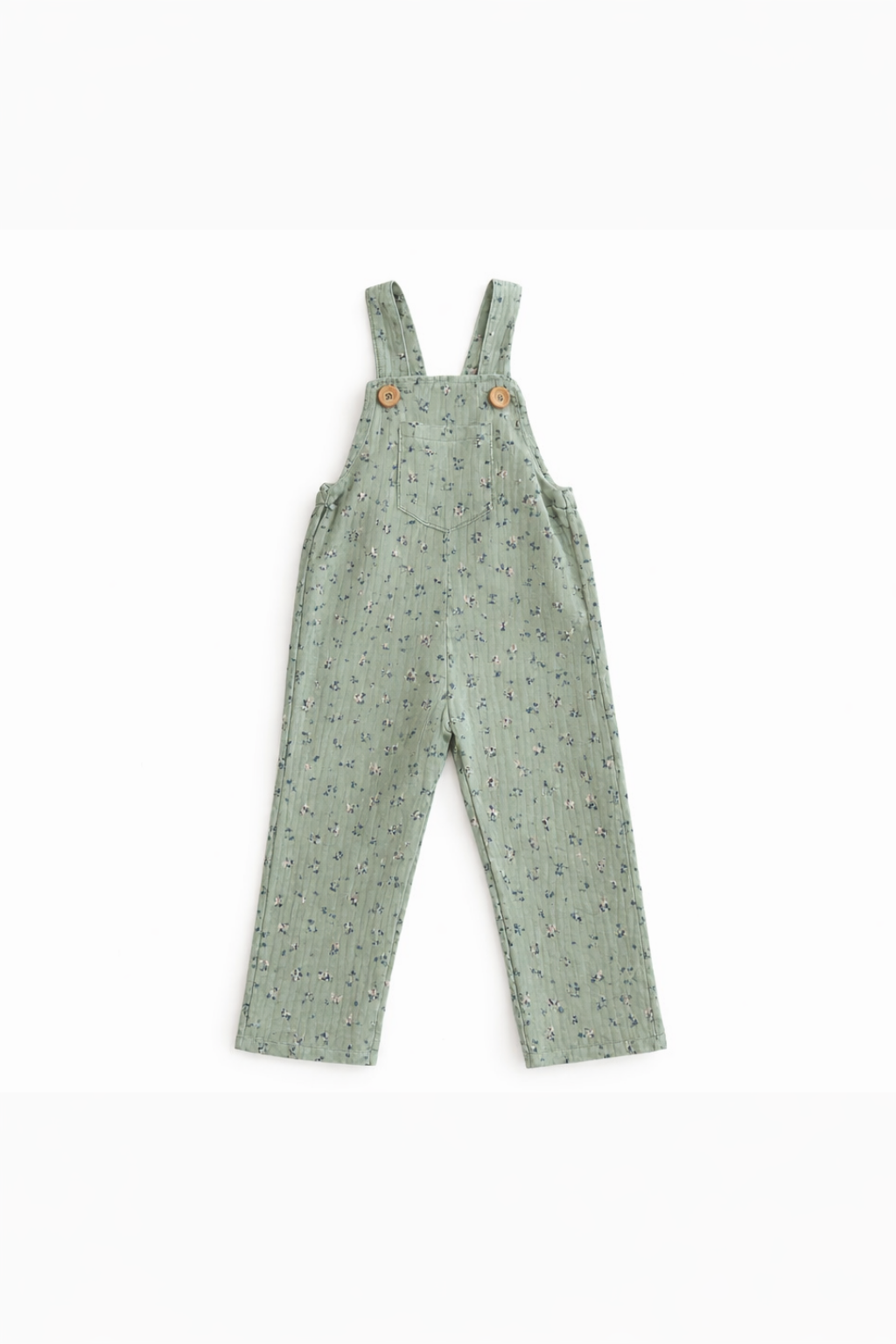 Peto largo bambula en tono verde, con tirantes abotonados y bolsillo frontal. Cómodo, ligero y perfecto para un look natural y atemporal.